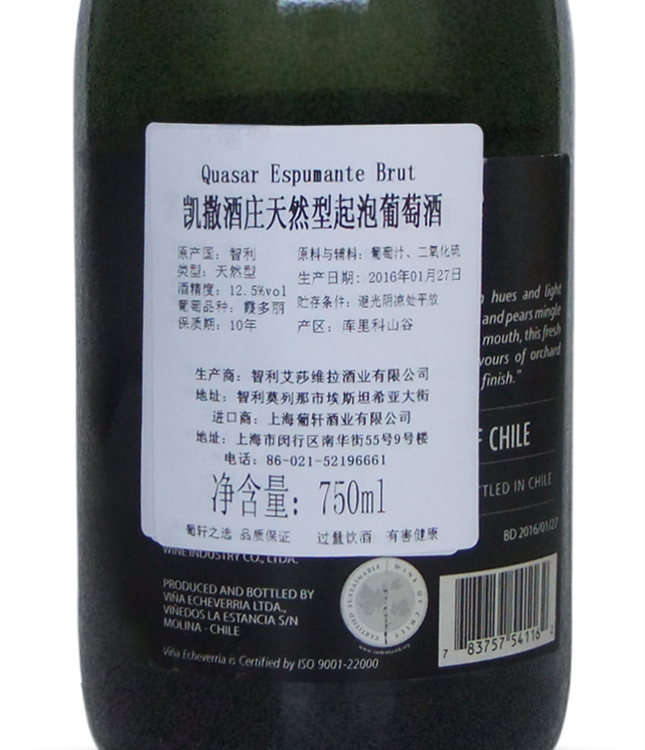 橡木桶陳釀時(shí)間 | 葡萄采摘年份 | 2016年 | 產(chǎn)品類型 | 起泡酒 | |