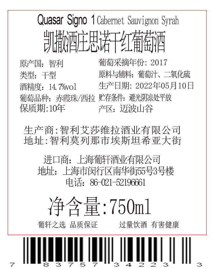 QUASAR LIMITED EDITION Cabernet Sauvignon