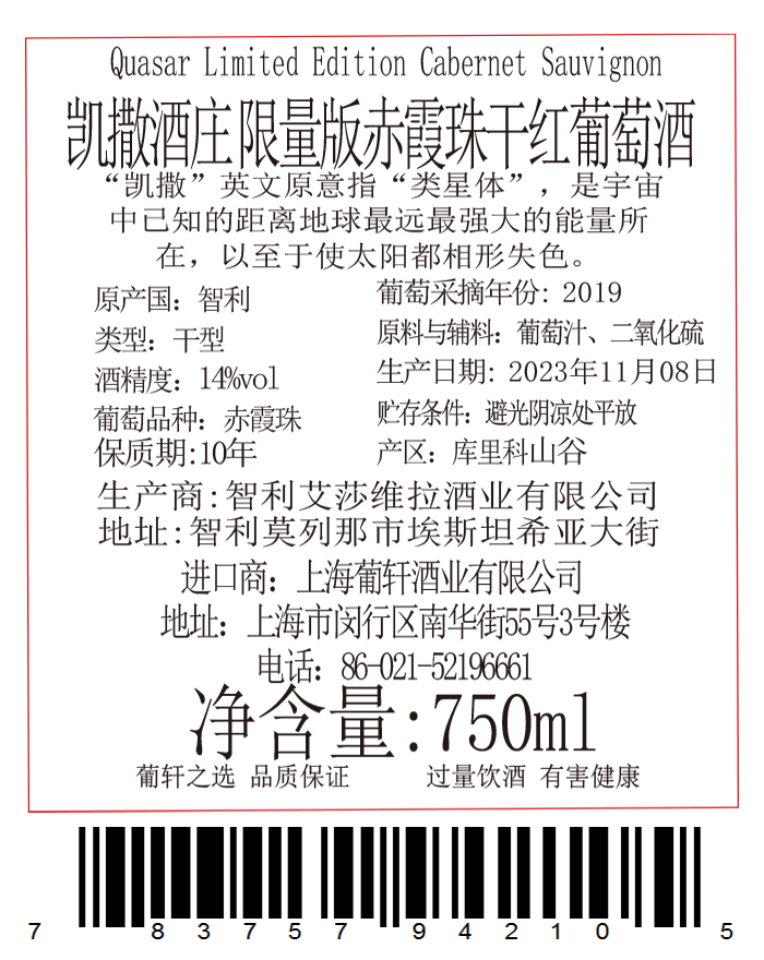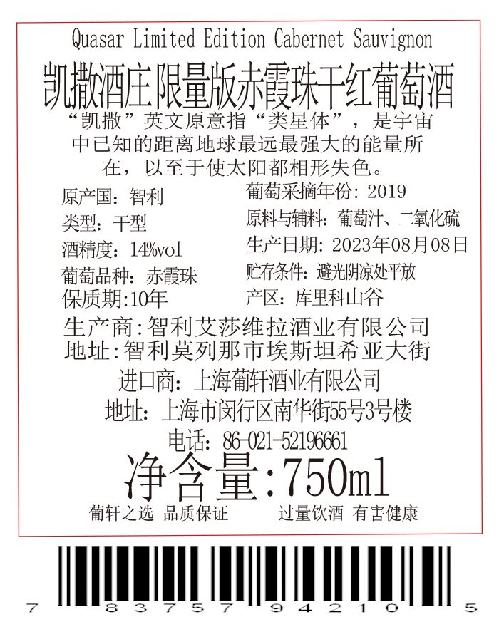 QUASAR LIMITED EDITION Cabernet Sauvignon