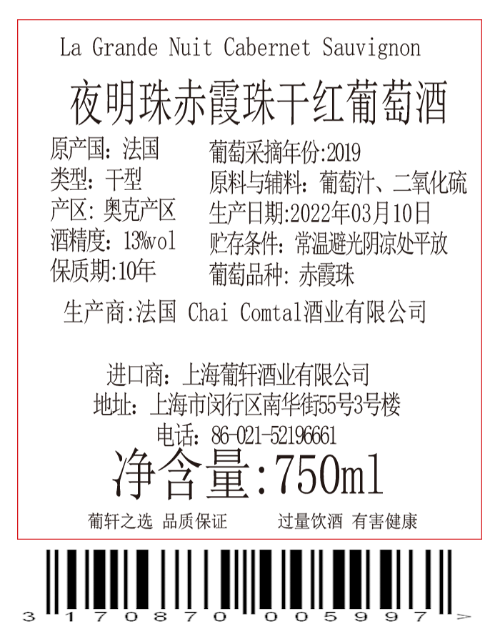 橡木桶陳釀時間 | 法國橡木桶中酒泥上陳釀3個月 | 葡萄采摘年份 | 2019年 | 產品類型 | 干紅葡萄酒 |
