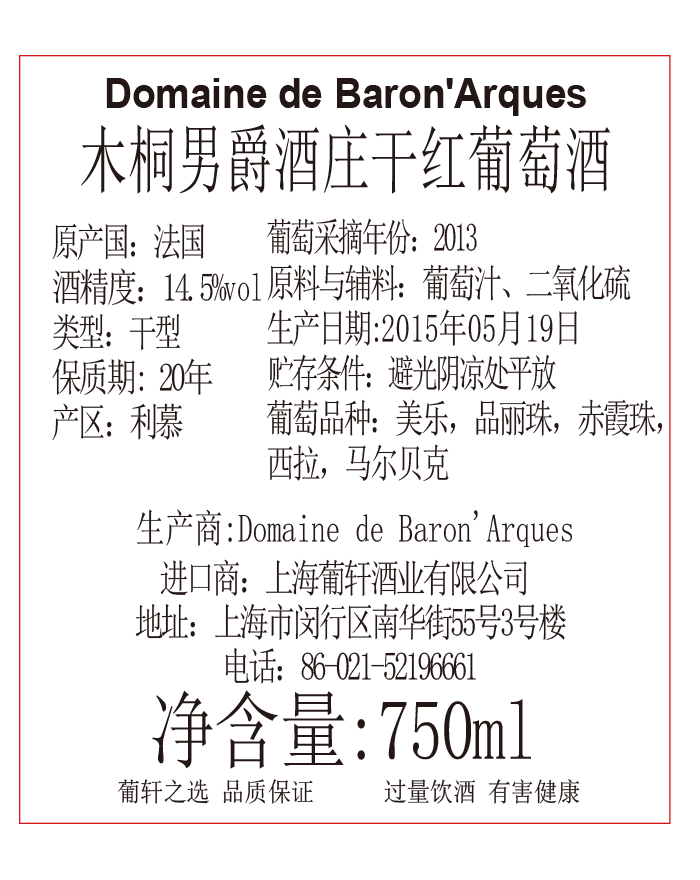 酒體顏色 | 石榴紅 | 包裝規格 | 6/木箱 | 口感 | 豐滿 |