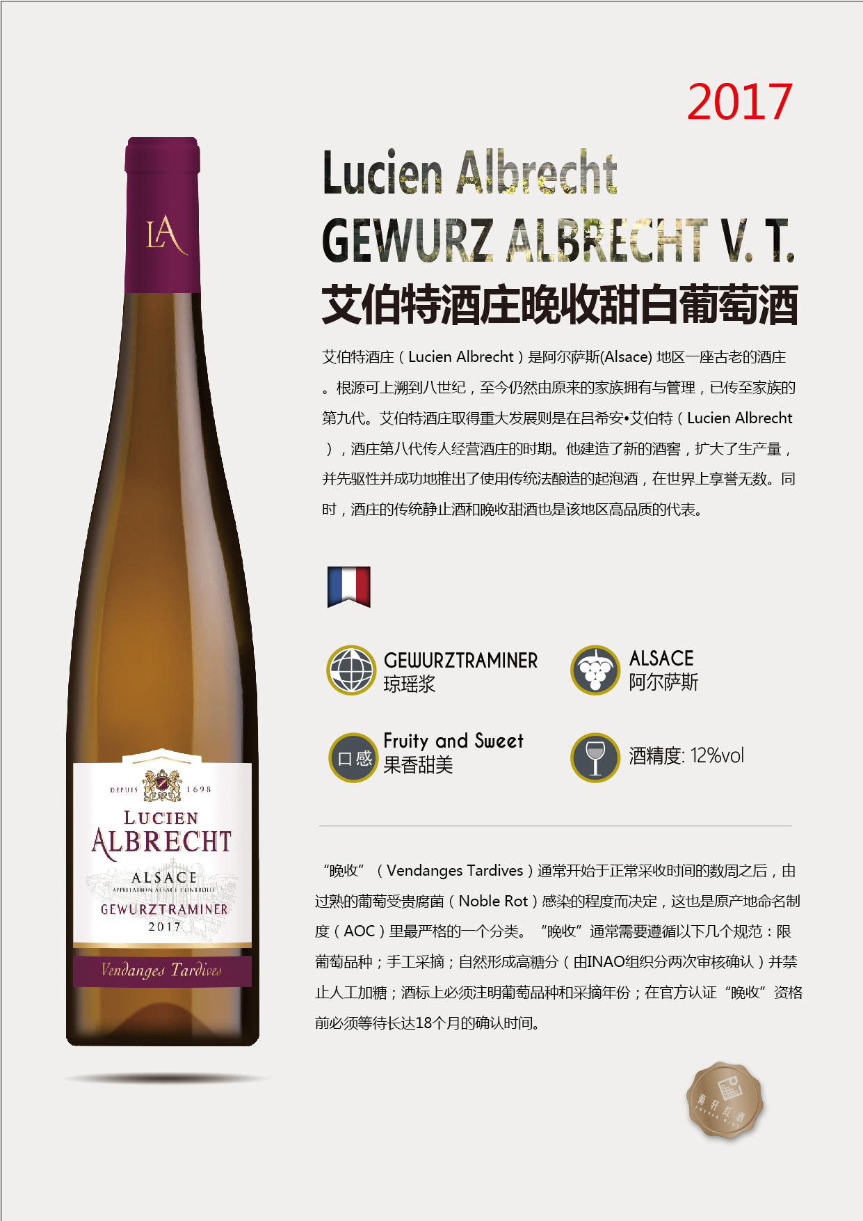 葡萄品種 | 瓊瑤漿GEWURZTRAMINER | 酒精度 | 12% | 酒體 | 中等 |