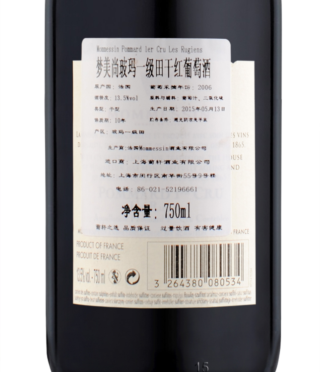 橡木桶陳釀時間 | 葡萄采摘年份 | 2006年 | 產品類型 | 干型紅葡萄酒 | |