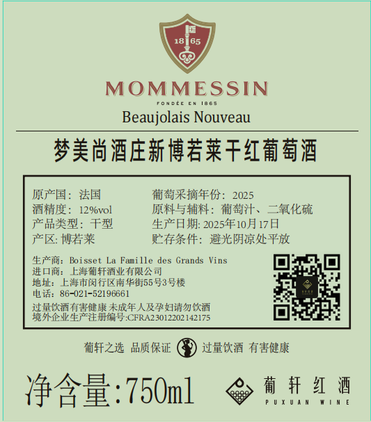 夢(mèng)美尚酒莊新博若萊村莊級(jí)干紅葡萄酒